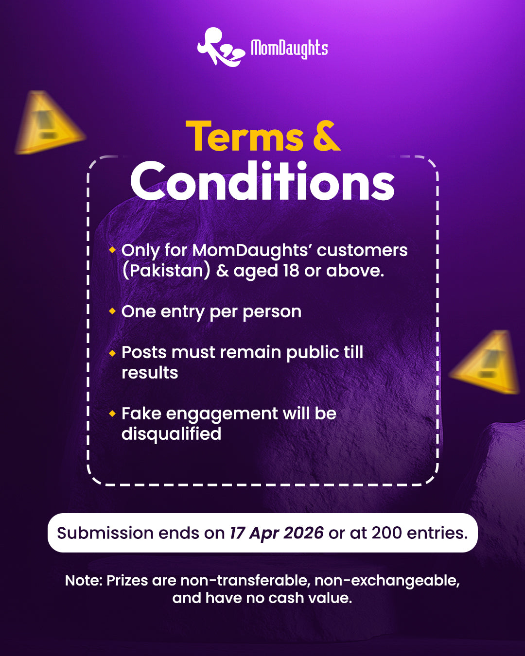 This giveaway is exclusively for MomDaughts' empowered women across Pakistan. Follow us, share your honest review, create a short reel featuring your MomDaughts product, and collab with @momdaughts on Instagram.