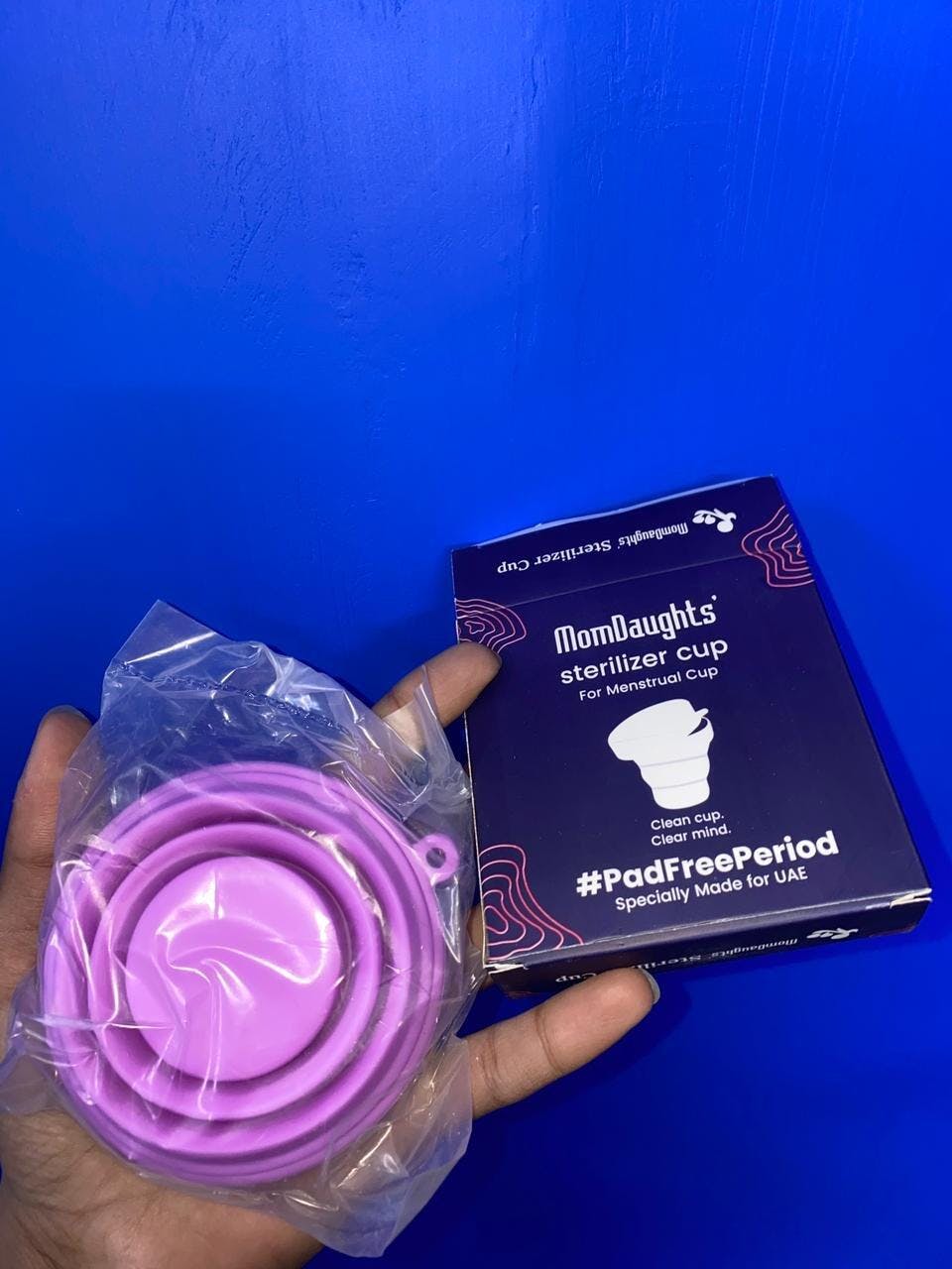 The MomDaughts Foldable Menstrual Cup Sterilizer is a compact and reusable solution for safe menstrual cup sterilization. Made from high-quality, food-grade silicone, this sterilizer cup is durable, portable, and easy to store. It holds up to 200ml of water and securely seals with its fitted lid, making it ideal for quick and effective period cup sterilization at home or while traveling. If you’re looking for the best menstrual cup sterilizer, this foldable design keeps your cup hygienic and ready to use—anytime, anywhere.