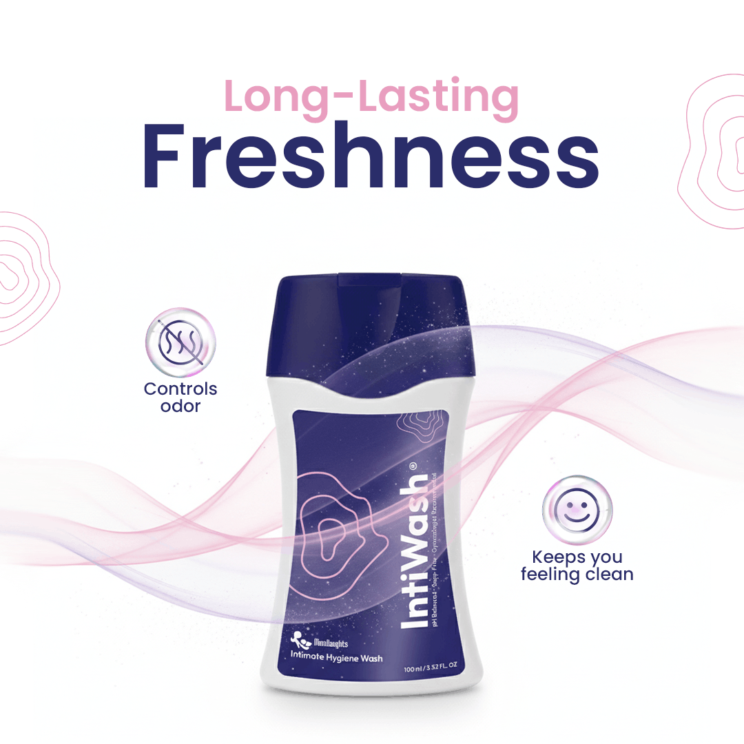 MomDaughts IntiWash (100 ml) is a gentle medicated intimate hygiene wash made with natural ingredients to help control bad odor while soothing vaginal itching and discomfort. Its soap-free, mild formula cleanses without disturbing the natural pH balance, making it safe for daily use and ideal for sensitive skin—leaving you feeling fresh, comfortable, and confident all day.